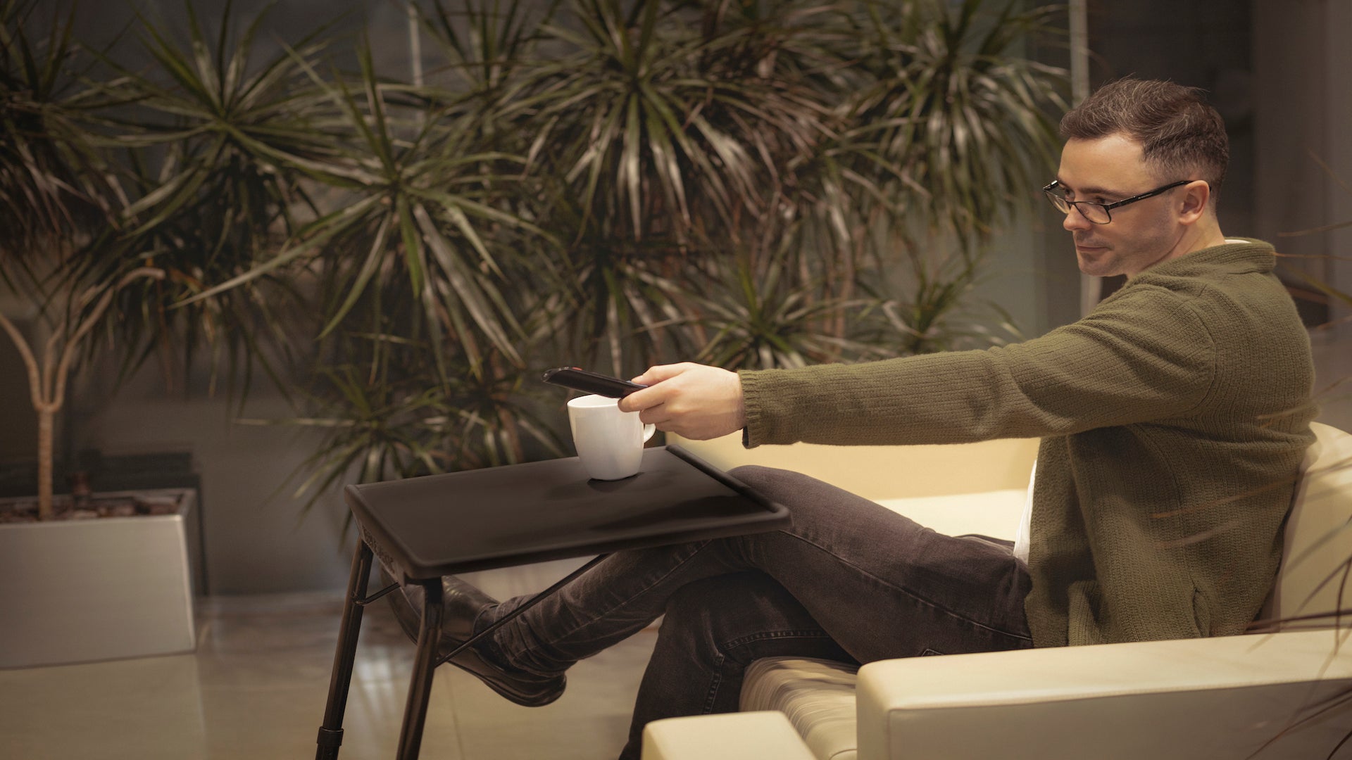 TABLE BUDDY executive ® | Folding Table With Cup Holder & Detachable Foot Rest | Black
